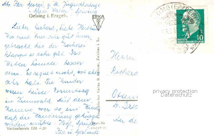 72640502 alte Postkarte Geising Erzgebirge postalisch gelaufen Erhaltung siehe scans [NatalD47] KatCode: 11110014290140