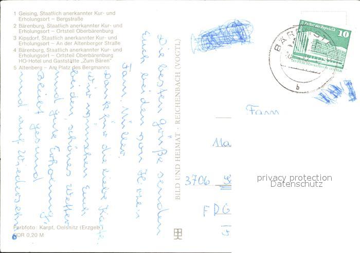 72424068 alte Postkarte Geising Erzgebirge Baerenburg Kipsdorf Altenberg postalisch gelaufen Erhaltung siehe scans KatCode: 11110014290140