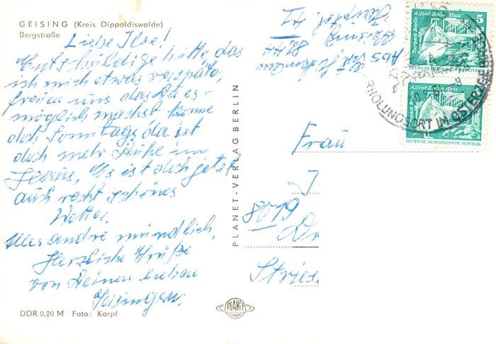 73908396 alte Postkarte Geising Erzgebirge Bergstrasse postalisch gelaufen Erhaltung siehe scans [WerneD78] KatCode: 11110014290140