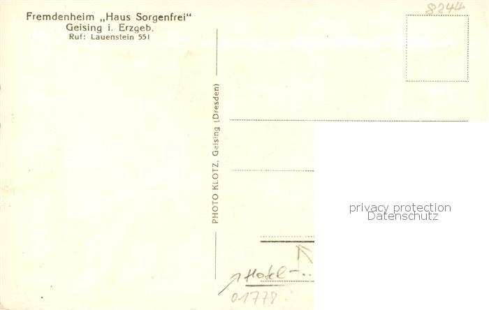73803086 Geising Erzgebirge Fremdenheim Haus Sorgenfrei postalisch nicht gelaufen Erhaltung siehe scans [FriedD77] KatCode: 11110014290140