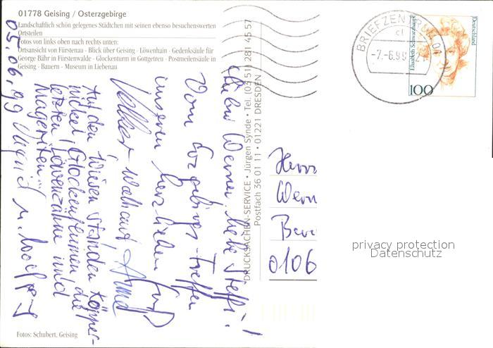 72379111 alte Postkarte Geising Erzgebirge Fuerstenau Geising Loewenhain Gedenksaeule Glockenturm postalisch gelaufen Erhaltung siehe scans KatCode: 11110014290140