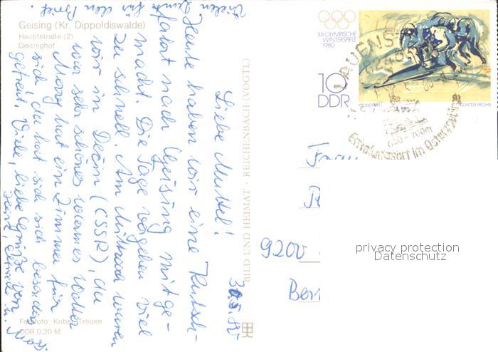 72322761 alte Postkarte Geising Erzgebirge Hauptstr Geisinghof postalisch gelaufen Erhaltung siehe scans KatCode: 11110014290140