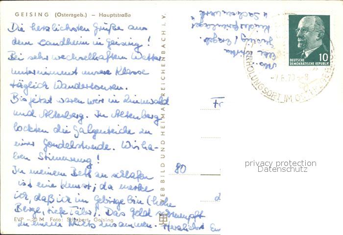 72067989 alte Postkarte Geising Erzgebirge Hauptstrasse postalisch gelaufen Erhaltung siehe scans KatCode: 11110014290140