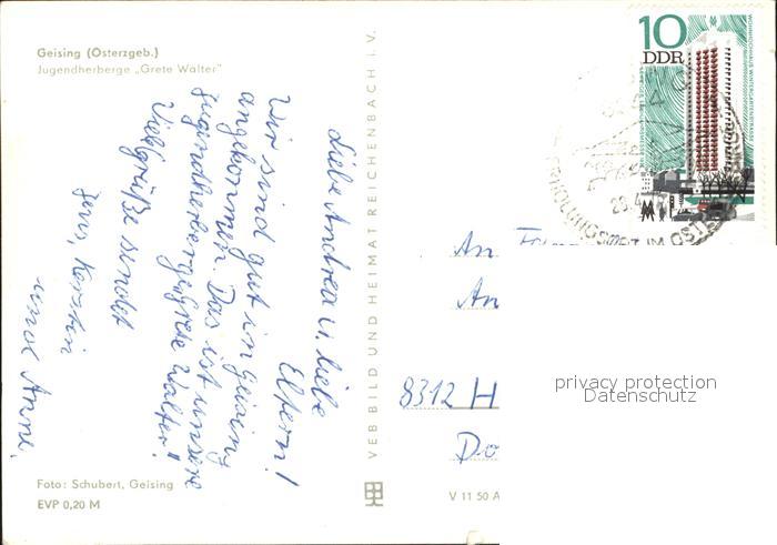 71989826 alte Postkarte Geising Erzgebirge Jugendherberge Grete Walter postalisch gelaufen Erhaltung siehe scans KatCode: 11110014290140