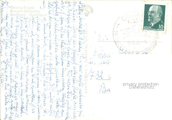 72017943 alte Postkarte Geising Erzgebirge Konsum Gaststaette Stadtcafe Sporthaeusl postalisch gelaufen Erhaltung siehe scans KatCode: 11110014290140