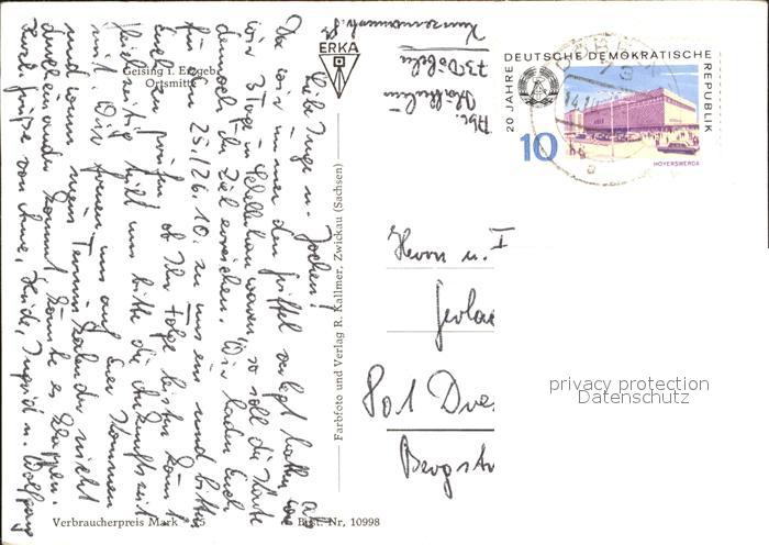 72372108 alte Postkarte Geising Erzgebirge Ortsmitte postalisch gelaufen Erhaltung siehe scans KatCode: 11110014290140