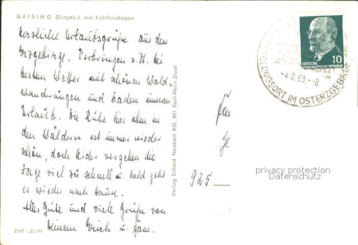 72328810 alte Postkarte Geising Erzgebirge Panorama mit Kohlhaukuppe postalisch gelaufen Erhaltung siehe scans KatCode: 11110014290140