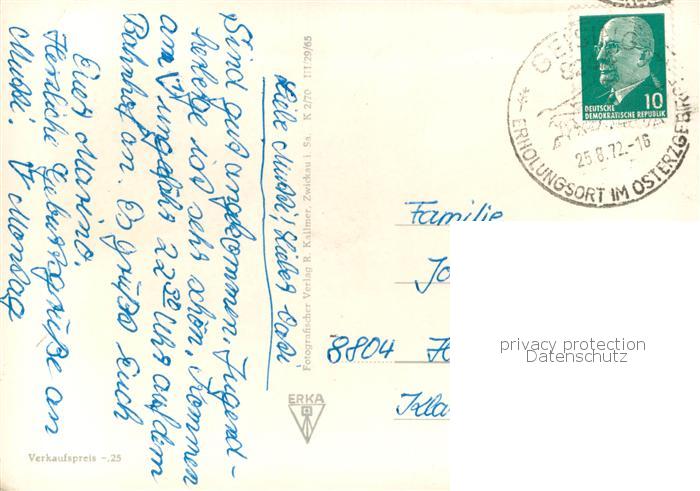 73757031 alte Postkarte Geising Erzgebirge Panorama Sparkasse Ratskeller postalisch gelaufen Erhaltung siehe scans [WerneD78] KatCode: 11110014290140