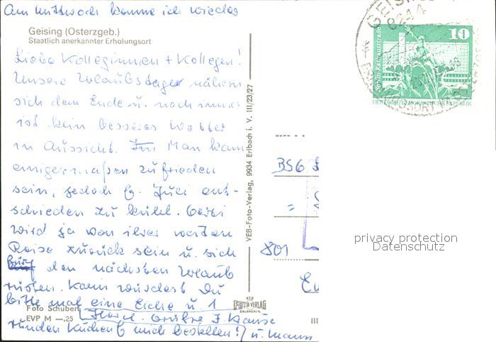 72385601 alte Postkarte Geising Erzgebirge Teilansicht postalisch gelaufen Erhaltung siehe scans KatCode: 11110014290140