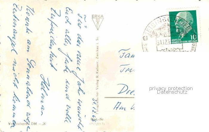72633669 alte Postkarte Geising Erzgebirge Teilansichten Winterpanorama Eislaufbahn Skispringen Sprungschanze postalisch gelaufen Erhaltung siehe scans [FriedD77] KatCode: 11110014290140