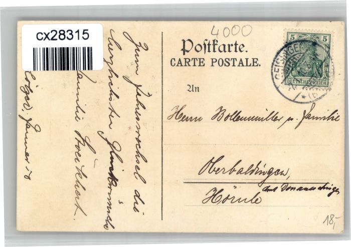 30909026 alte Postkarte Geisingen Baden Geisingen [Stempelabschlag] Kruppsches Beamten Kasino postalisch gelaufen KatCode: 11110008327018