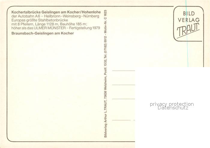73196634 Geislingen Kocher Kochertalbruecke postalisch nicht gelaufen Erhaltung siehe scans [NatalD47] KatCode: 11110008127009