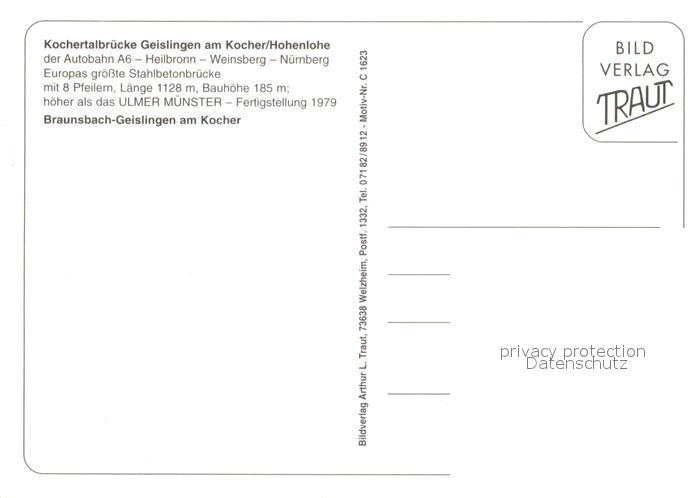 73267516 Geislingen Kocher Kochertalbruecke postalisch nicht gelaufen Erhaltung siehe scans [WerneD78] KatCode: 11110008127009