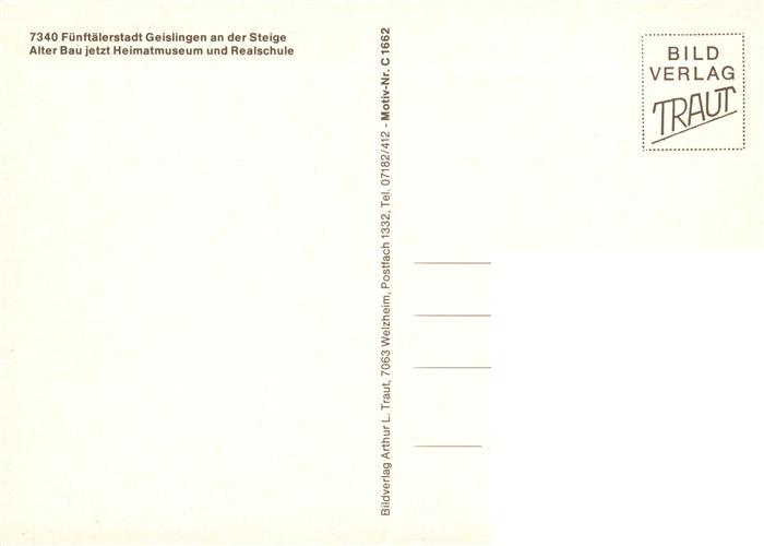 73878311 Geislingen Steige Alter Bau jetzt Heimatmuseum und Realschule postalisch nicht gelaufen Erhaltung siehe scans [WerneD78] KatCode: 11110008117024