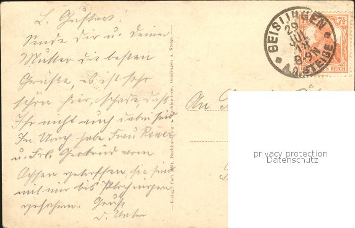 31849834 alte Postkarte Geislingen Steige Blick ueber die Stadt Kirche Eisenbahn postalisch gelaufen Erhaltung siehe scans KatCode: 11110008117024