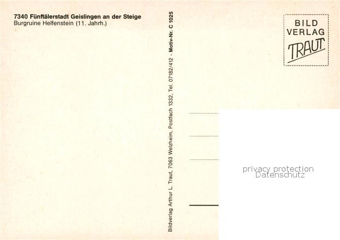 73267519 Geislingen Steige Burgruine Helfenstein postalisch nicht gelaufen Erhaltung siehe scans [WerneD78] KatCode: 11110008117024