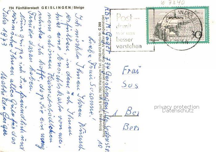72903510 alte Postkarte Geislingen Steige Fliegeraufnahme postalisch gelaufen Erhaltung siehe scans [FriedD77] KatCode: 11110008117024