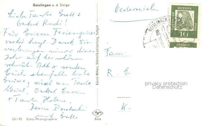 33658205 alte Postkarte Geislingen Steige Fliegeraufnahme postalisch gelaufen Erhaltung siehe scans [WerneD78] KatCode: 11110008117024