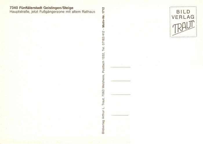 73877826 Geislingen Steige Hauptstrasse Fussgaengerzone mit altem Rathaus postalisch nicht gelaufen Erhaltung siehe scans [WerneD78] KatCode: 11110008117024
