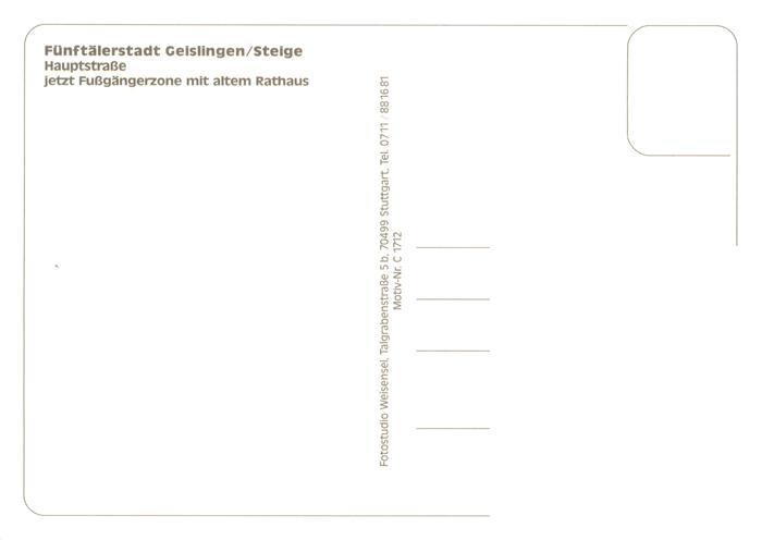 73877825 Geislingen Steige Hauptstrasse Fussgaengerzone mit altem Rathaus postalisch nicht gelaufen Erhaltung siehe scans [WerneD78] KatCode: 11110008117024