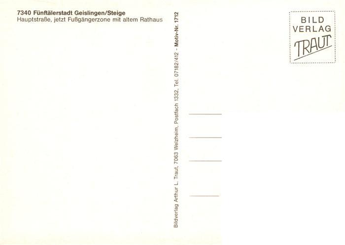 73877823 Geislingen Steige Hauptstrasse Fussgaengerzone mit altem Rathaus postalisch nicht gelaufen Erhaltung siehe scans [WerneD78] KatCode: 11110008117024