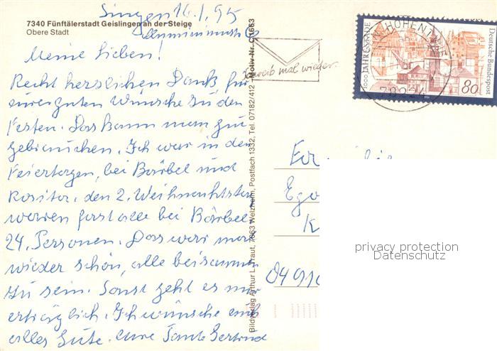 73761193 alte Postkarte Geislingen Steige Obere Stadt Fliegeraufnahme postalisch gelaufen Erhaltung siehe scans [WerneD78] KatCode: 11110008117024