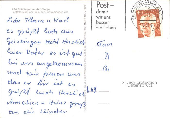 72139669 alte Postkarte Geislingen Steige Oderturm Rohrbach Wilhelms Denkmal Helfenstein Alter Bau WMF Ostland Kreuz Steige postalisch gelaufen Erhaltung siehe scans KatCode: 11110008117024