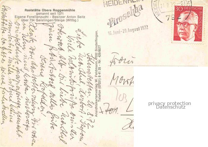 74100725 alte Postkarte Geislingen Steige Raststaette Obere Roggenmuehle Fachwerkhaeuser postalisch gelaufen Erhaltung siehe scans [FriedD77] KatCode: 11110008117024