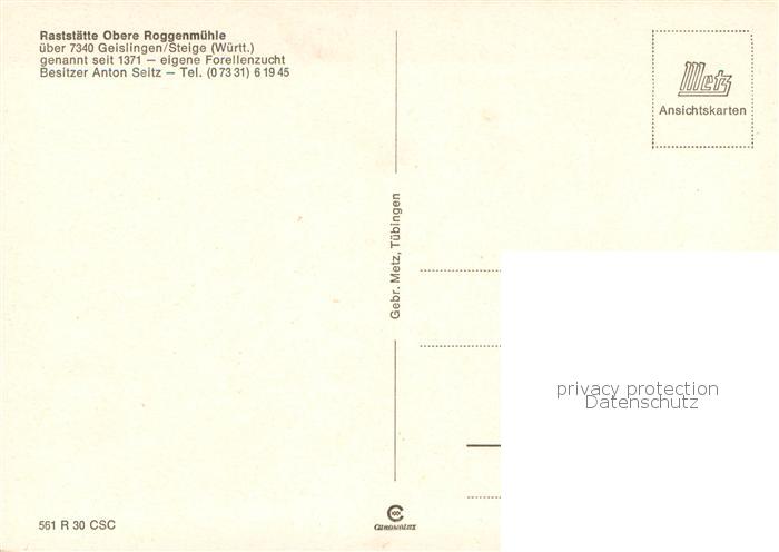 73776140 Geislingen Steige Raststaette Obere Roggenmuehle postalisch nicht gelaufen Erhaltung siehe scans [WerneD78] KatCode: 11110008117024