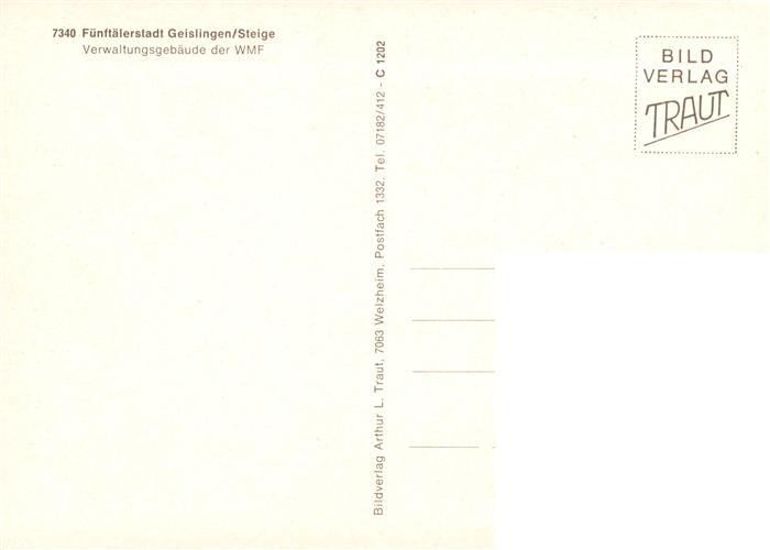 73878323 Geislingen Steige Verwaltungsgebaeude der WMF postalisch nicht gelaufen Erhaltung siehe scans [WerneD78] KatCode: 11110008117024