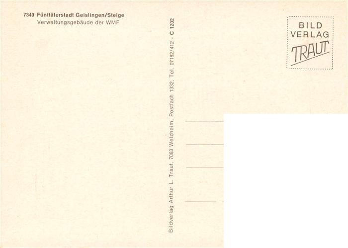 73877808 Geislingen Steige Verwaltungsgebaeude der WMF Wasserspiele postalisch nicht gelaufen Erhaltung siehe scans [WerneD78] KatCode: 11110008117024