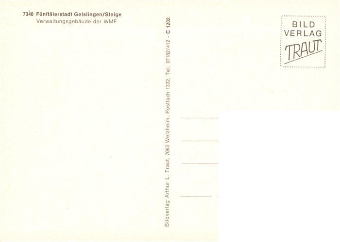 73878325 Geislingen Steige Verwaltungsgebaeude der WMF postalisch nicht gelaufen Erhaltung siehe scans [WerneD78] KatCode: 11110008117024