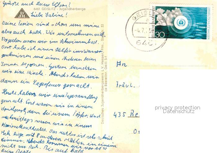 72745875 alte Postkarte Geislitz Jugendherberge postalisch gelaufen Erhaltung siehe scans [FriedD77] KatCode: 11110006435018