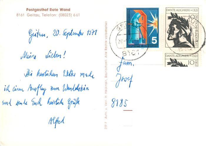 73872832 alte Postkarte Geitau Bayrischzell Postgasthof Rote Wand postalisch gelaufen Erhaltung siehe scans [WerneD78] KatCode: 11110009182112