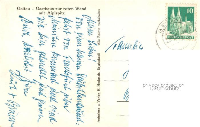 73740141 alte Postkarte Geitau Gasthaus zur roten Wand mit Aiplspitz postalisch gelaufen Erhaltung siehe scans [WerneD78] KatCode: 11110009182112