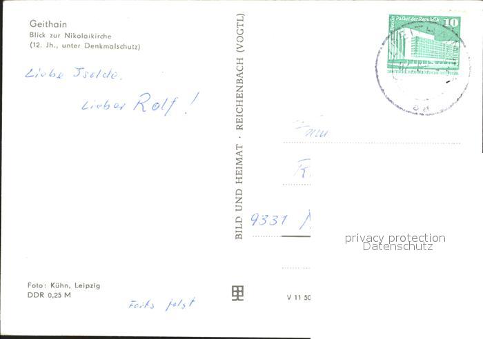 72113686 alte Postkarte Geithain Blick zur Nikolaikirche postalisch gelaufen Erhaltung siehe scans KatCode: 11110014379230