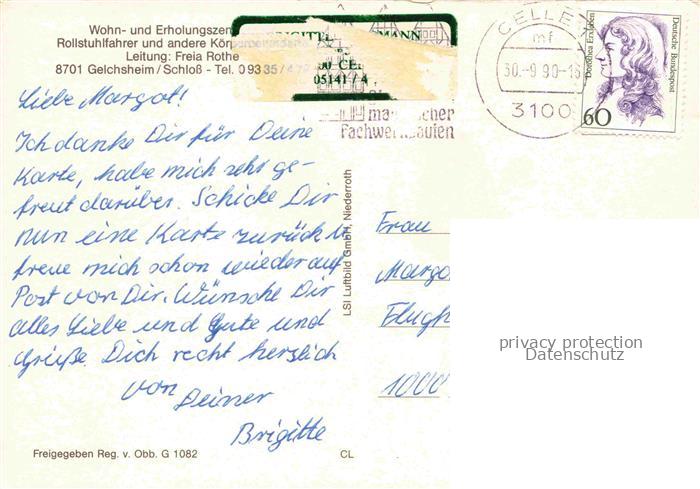 74023849 alte Postkarte Gelchsheim Wohn- und Erholungszentrum Schloss postalisch gelaufen Fliegeraufnahme Erhaltung siehe scans [FriedD77] KatCode: 11110009679135