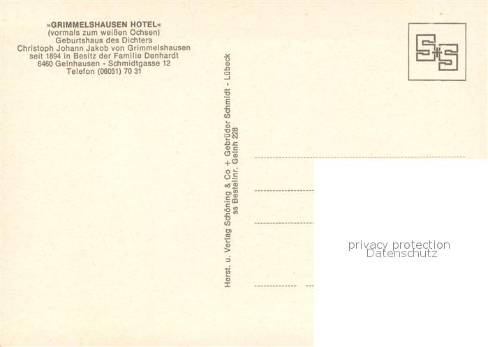 73723903 Gelnhausen Grimmelshausen Hotel Geburtshaus des Dichters von Grimmelshausen Fachwerkhaus postalisch nicht gelaufen Erhaltung siehe scans [FriedD77] KatCode: 11110006435010