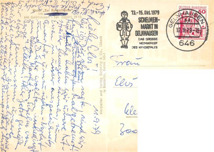 73902958 alte Postkarte Gelnhausen Hotel Zur Burgschaenke Gastraeume postalisch gelaufen Erhaltung siehe scans [WerneD78] KatCode: 11110006435010