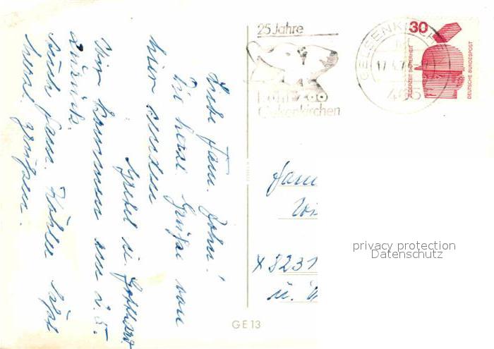 72739906 alte Postkarte GELSENKIRCHEN NRW Bahnhof Park Springbrunnen Schloss Musiktheater postalisch gelaufen Erhaltung siehe scans [FriedD77] KatCode: 11110005513000