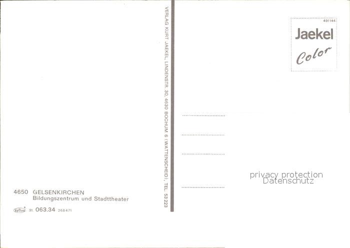 71988156 GELSENKIRCHEN NRW Bildungszentrum mit Stadttheater postalisch nicht gelaufen Erhaltung siehe scans KatCode: 11110005513000