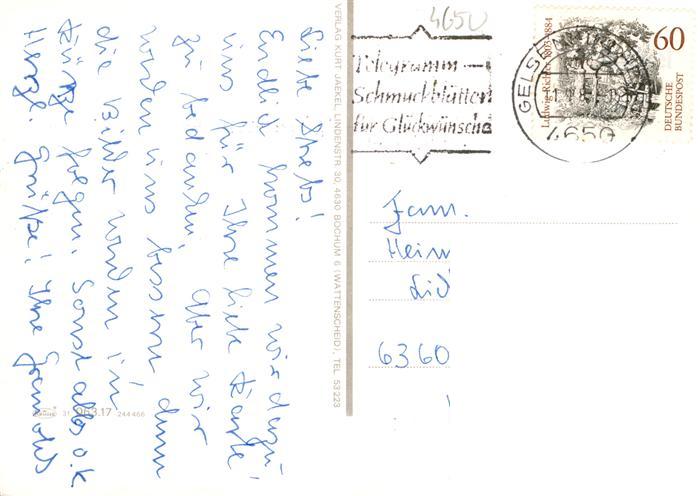 73936344 GELSENKIRCHEN NRW Ortspartie Staedt Buehnen Schloss Berge Hauptbahnhof Zoo Elefant Park postalisch gelaufen Erhaltung siehe scans [WerneD78] alte Postkarte Wern Katcode 11110005513000