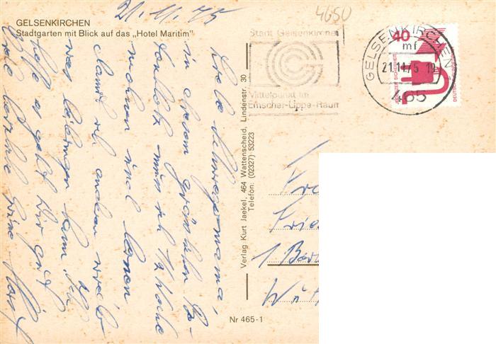 73936351 GELSENKIRCHEN NRW Stadtgarten mit Hotel Maritim postalisch gelaufen Erhaltung siehe scans [WerneD78] alte Postkarte Wern Katcode 11110005513000