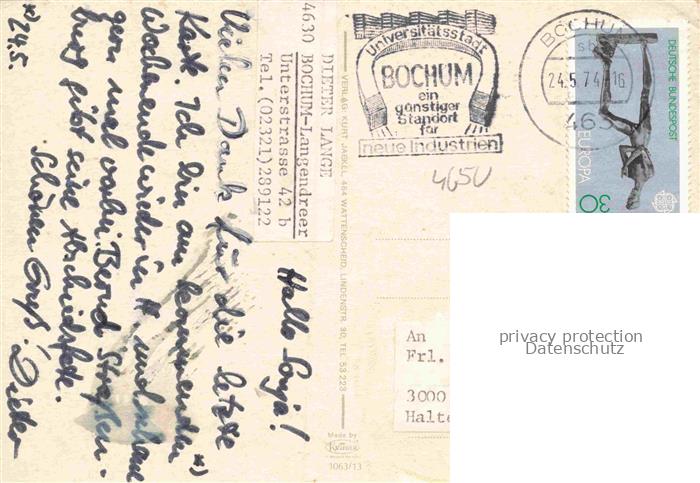 74100679 GELSENKIRCHEN NRW Stadtgarten Schloss Berge Bahnhofstrasse Neumarkt postalisch gelaufen Erhaltung siehe scans [WerneD78] alte Postkarte Wern Katcode 11110005513000