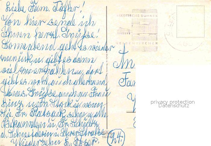 72840599 alte Postkarte GELSENKIRCHEN NRW Stadtgarten Schloss Berge Neumarkt Fussgaengerzone Bahnhofstrasse Wappen postalisch gelaufen Erhaltung siehe scans [FriedD77] KatCode: 11110005513000