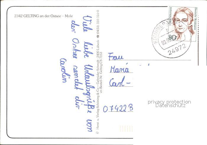 71993238 alte Postkarte Gelting Schleswig Holstein Fliegeraufnahme Hafen Mole postalisch gelaufen Erhaltung siehe scans KatCode: 11110001059112