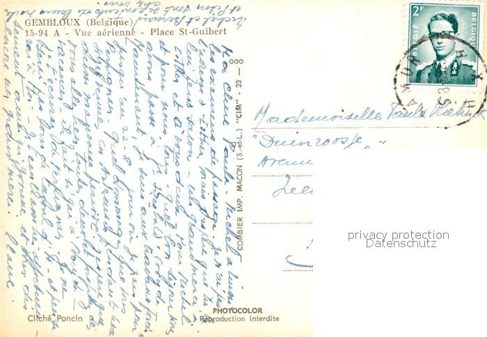 72954543 carte postale Gembloux Place St Guibert vue aerienne postalisch gelaufen Erhaltung siehe scans [FriedD77] KatCode: 11070092000176