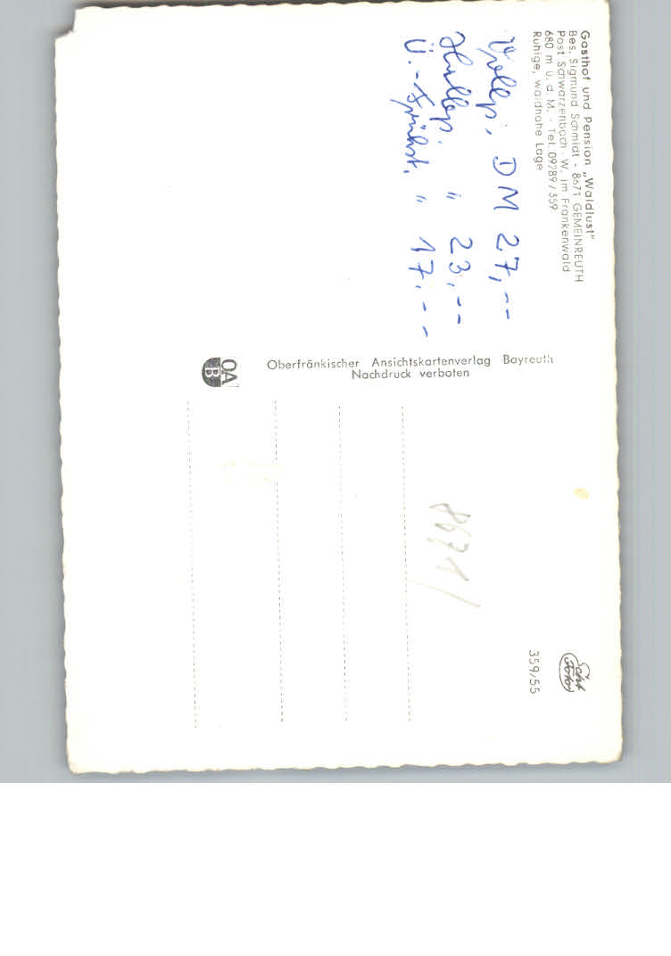 31171541 Gemeinreuth Wald Gasthof Pension Waldlust postalisch nicht gelaufen KatCode: 11110009475169
