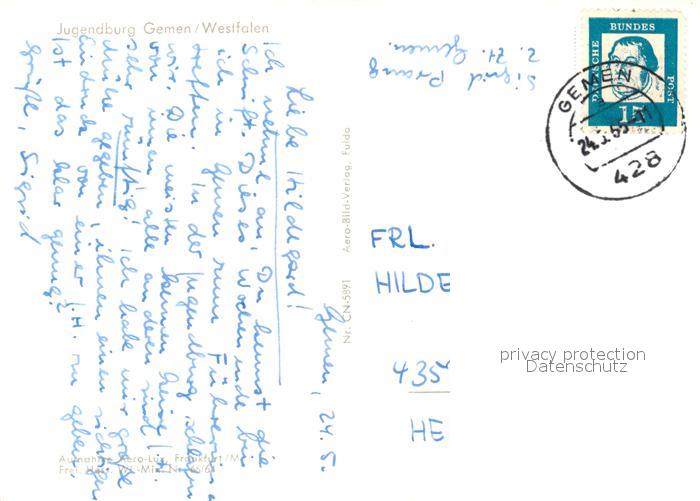 73279053 alte Postkarte Gemen Fliegeraufnahme Jugendburg postalisch gelaufen Erhaltung siehe scans [NatalD47] KatCode: 11110005554012