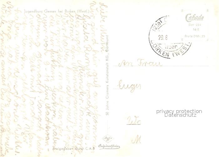 73096039 alte Postkarte Gemen Fliegeraufnahme Jugendburg postalisch gelaufen Erhaltung siehe scans [KathaD81] KatCode: 11110005554012